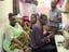 ラハケニアの洋服を着た娘を抱く河野リエさん(右)。隣は創業時から同社に製品を提供するテーラーのウィリアムさんとその子どもたち
