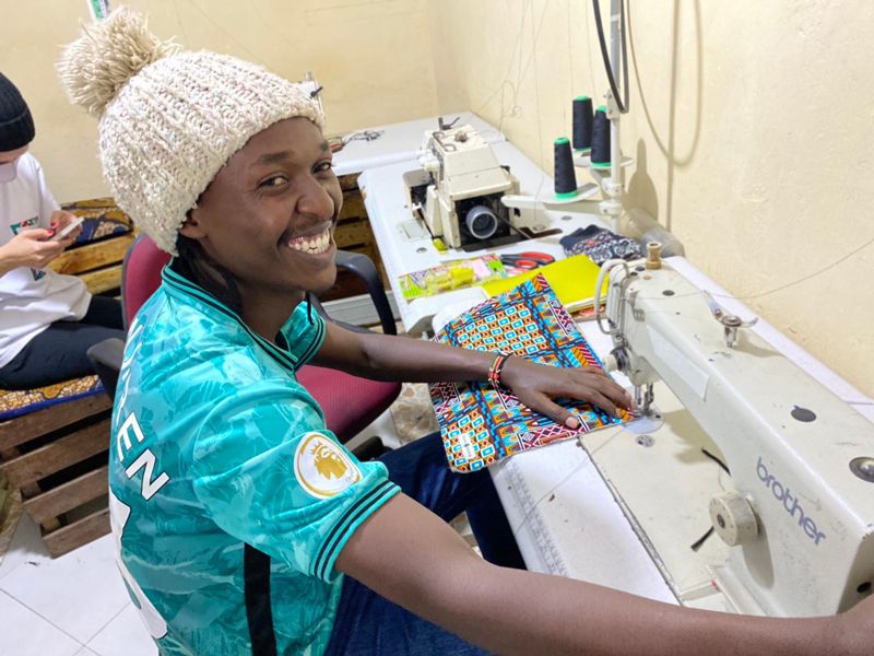 2019年4月、ラハケニアの仕事を始めてすぐの頃のウィリアムさん。スラムにある職業訓練校の一角を借りていた