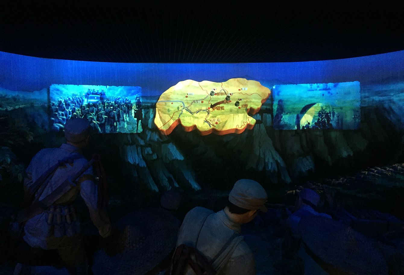 CGによる抗日戦の再現。正面のスクリーンから戦闘機などが飛び出す