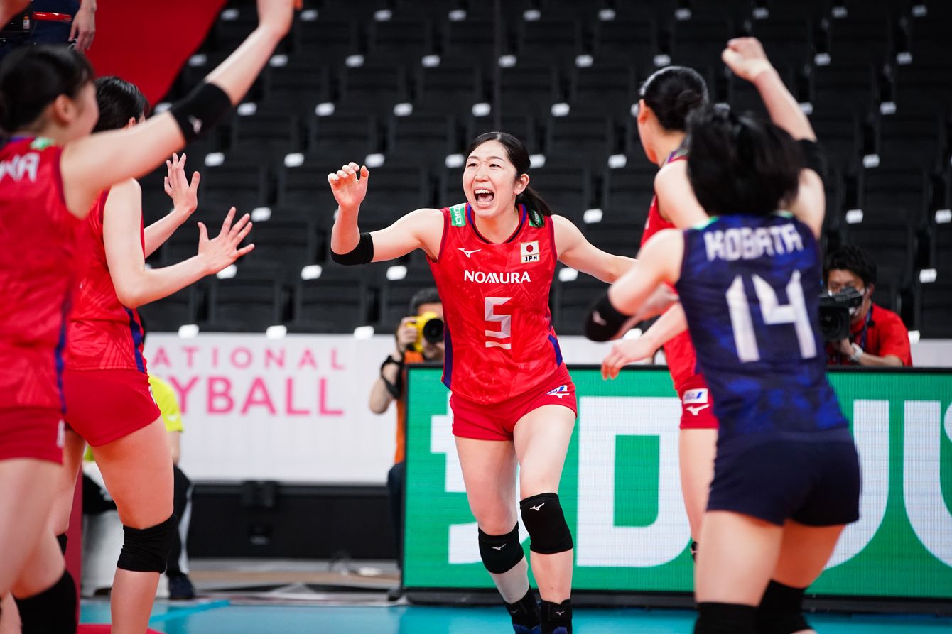 荒木絵里香さん(中央)。5月1日に東京・有明アリーナで行われた中国戦で