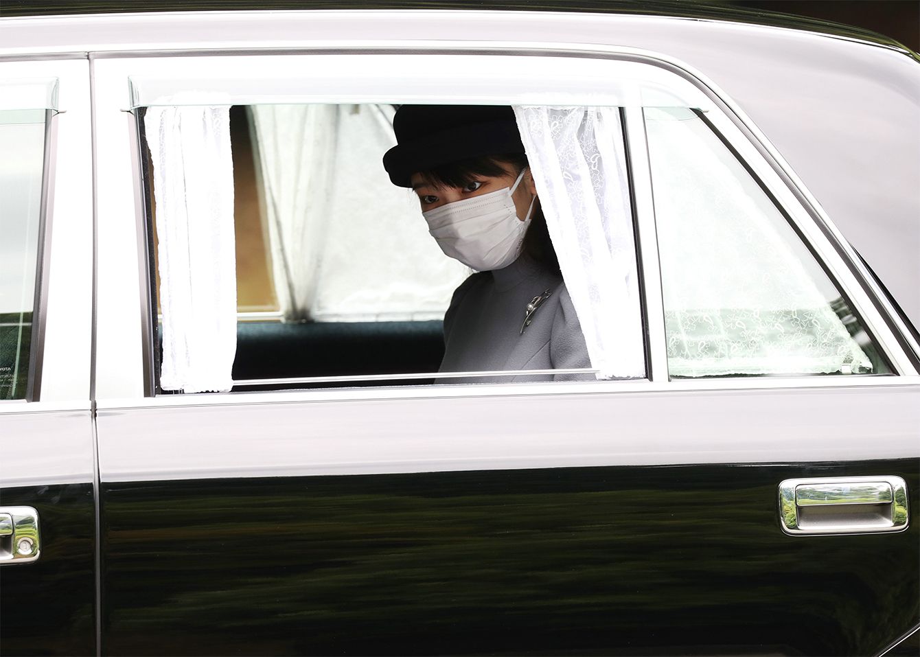香淳皇后の陵墓・武蔵野東陵を参拝され、武蔵陵墓地を後にされる秋篠宮家の長女眞子さま=2021年6月16日日、東京都八王子市[代表撮影]