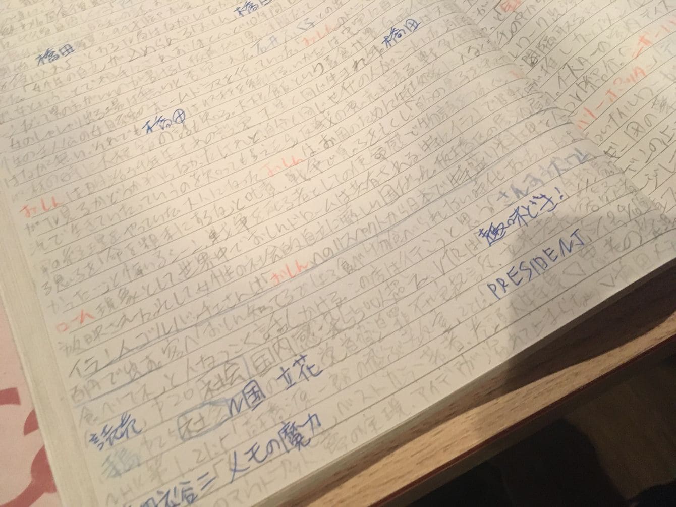 好奇心旺盛な田中さんは、読みたい本や雑誌、見たいテレビ番組などを日記にみっしりと書き込んでいた。下に青字で『PRESIDENT』の文字も。