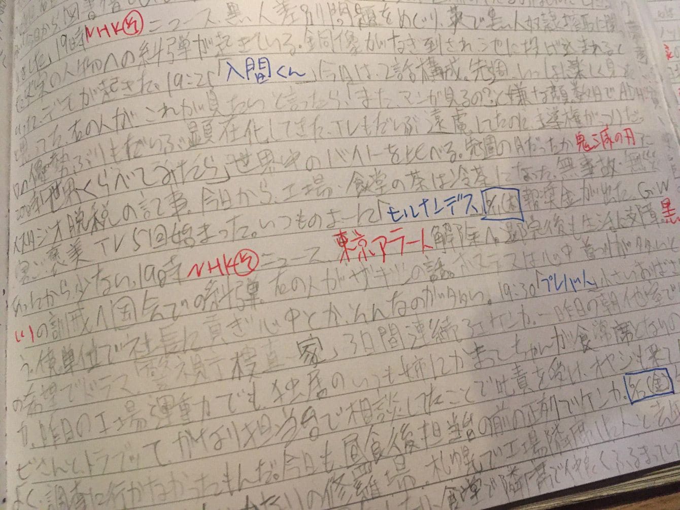 好奇心旺盛な田中さんは、読みたい本や雑誌、見たいテレビ番組などを日記にみっしりと書き込んでいた。下に青字で『PRESIDENT』の文字も。