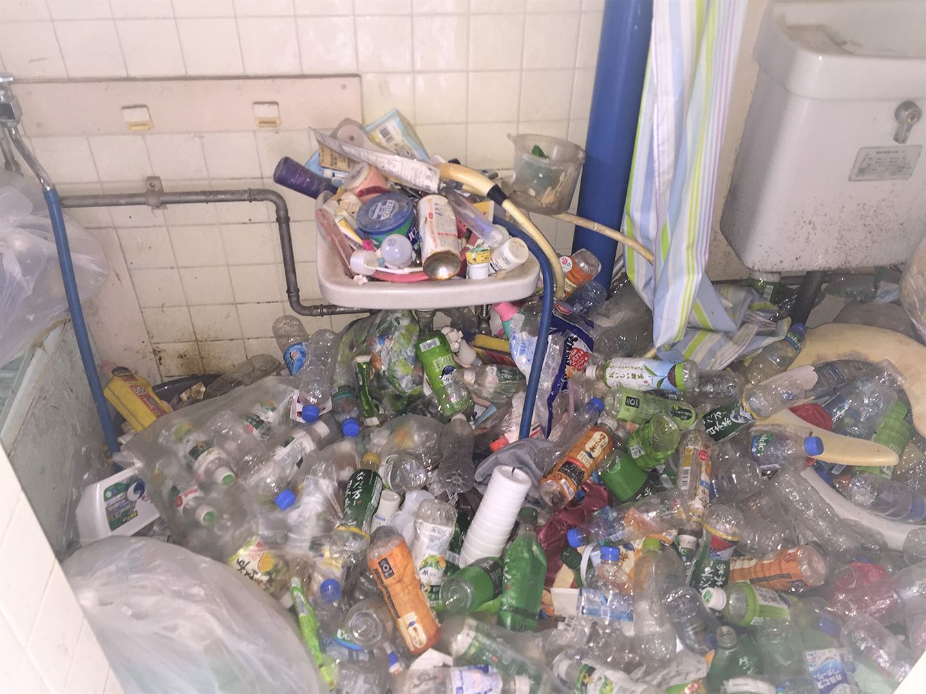 あるゴミ屋敷の風呂場の様子。