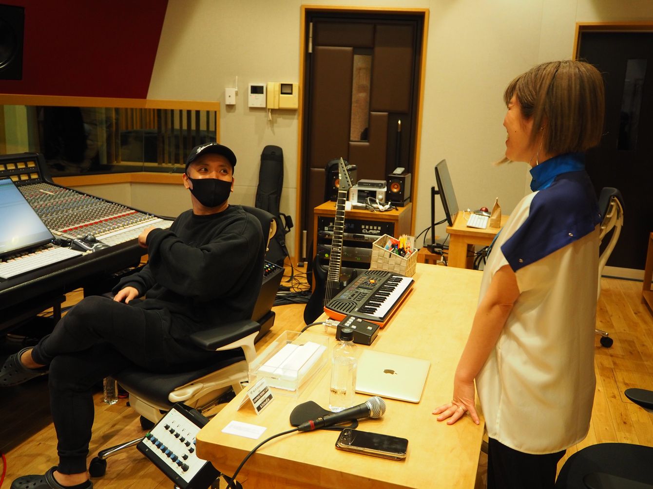 自らマイクを持って歌いながら、曲を仕上げていく