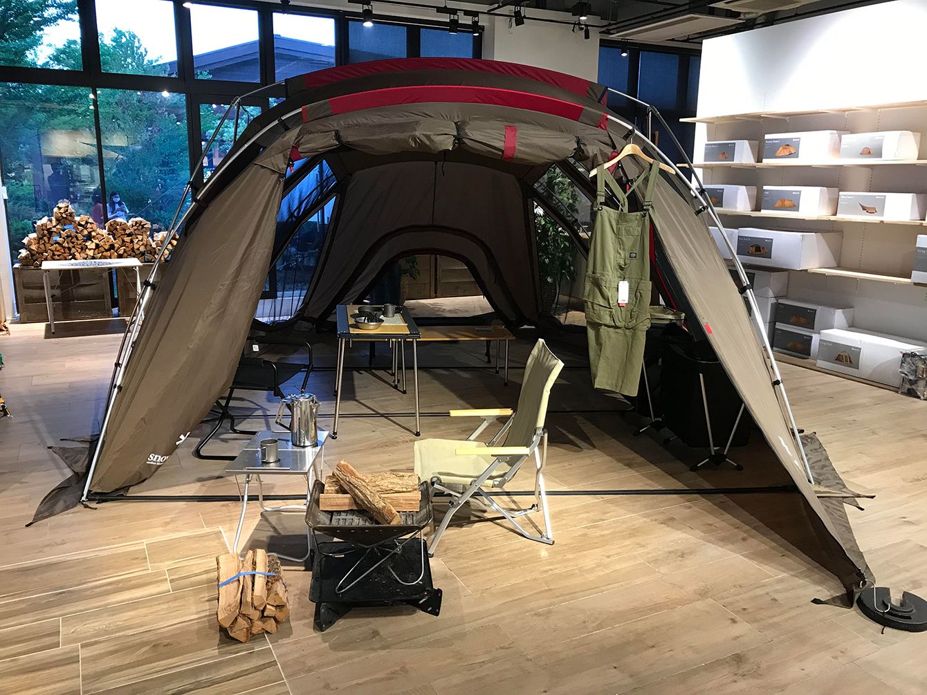 「スノーピーク 昭島アウトドアヴィレッジ」の店内の様子。焚火用の薪も置かれている