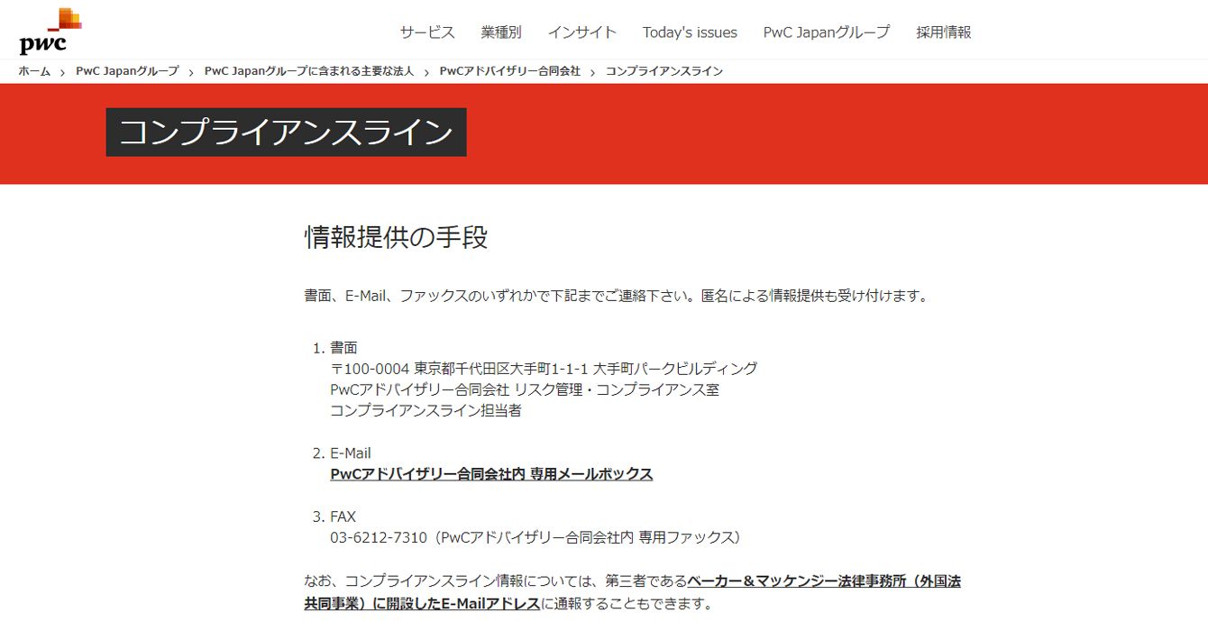 PwCジャパンのウェブサイト