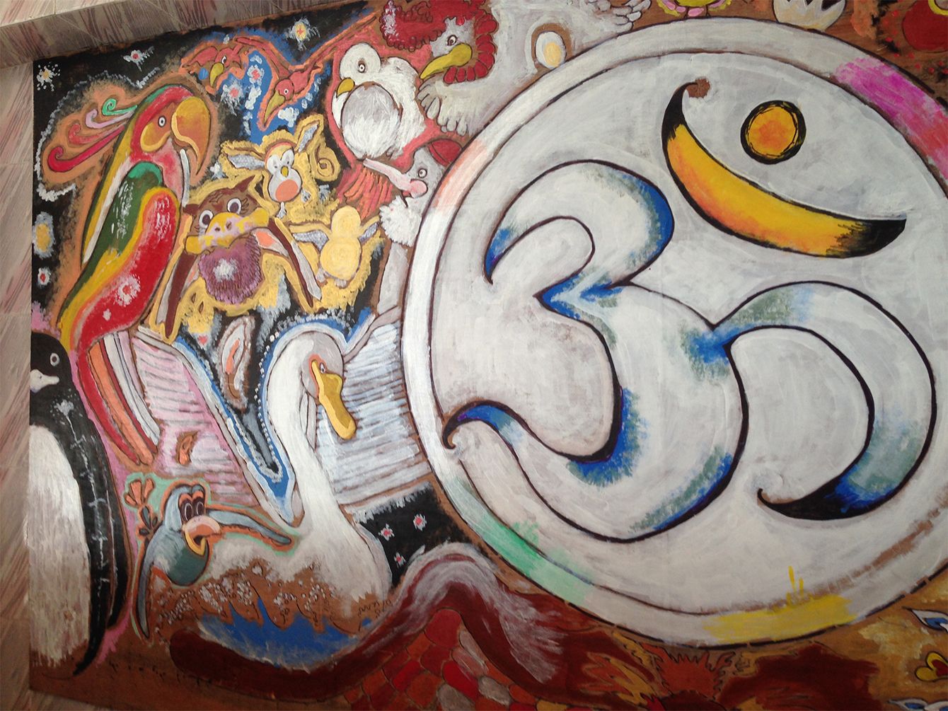 インドで描いた壁画です。インドでは衣食住の代わりに壁画を描いていました。これも一つの寄生の方法かもしれません。