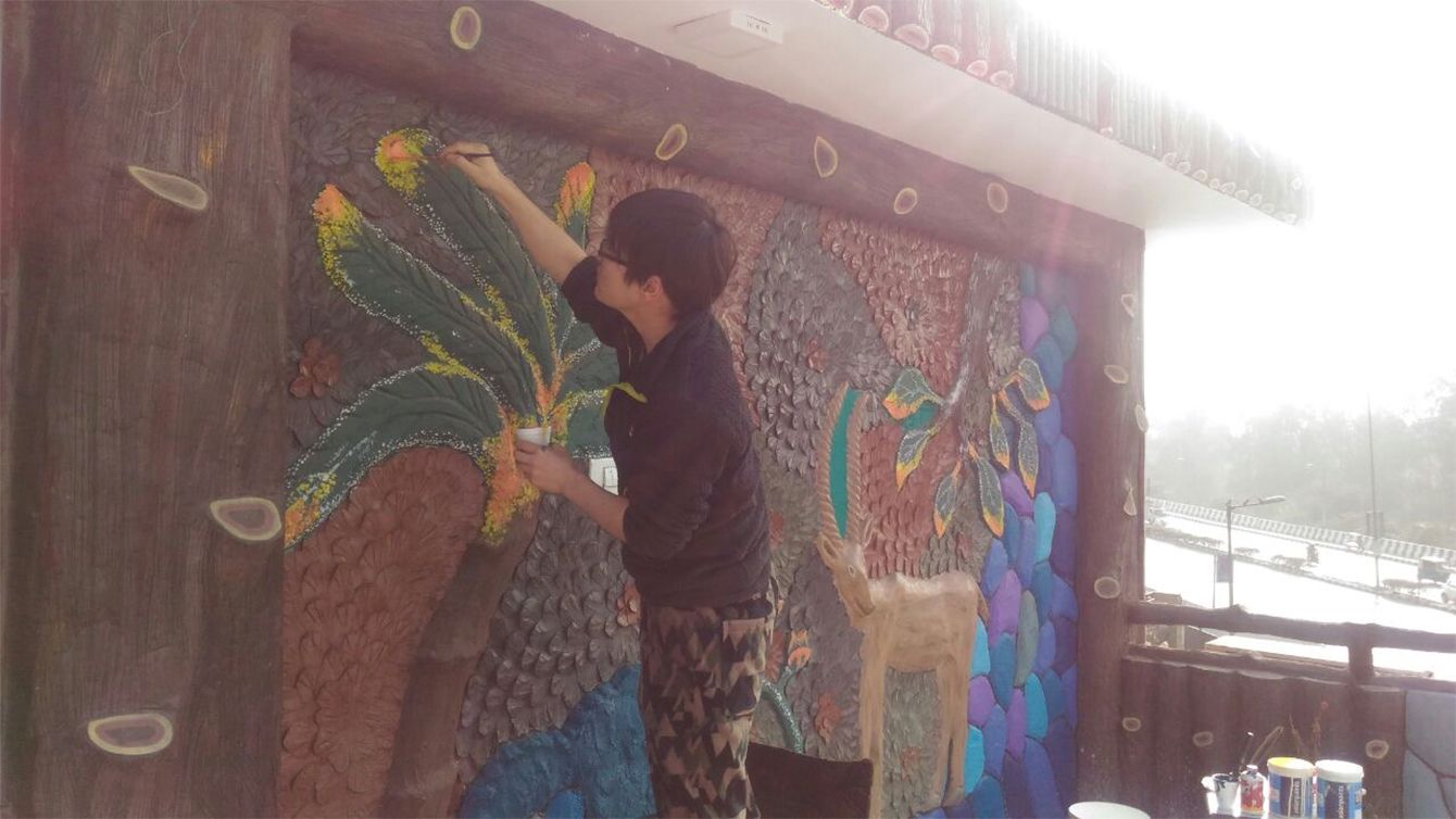 インドで描いた壁画です。インドでは衣食住の代わりに壁画を描いていました。これも一つの寄生の方法かもしれません。