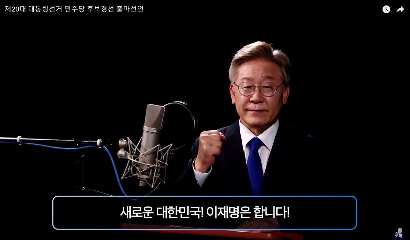 2021年7月1日、ユーチューブで来年3月の韓国大統領選出馬を表明する京畿道の李在明知事(ユーチューブより)