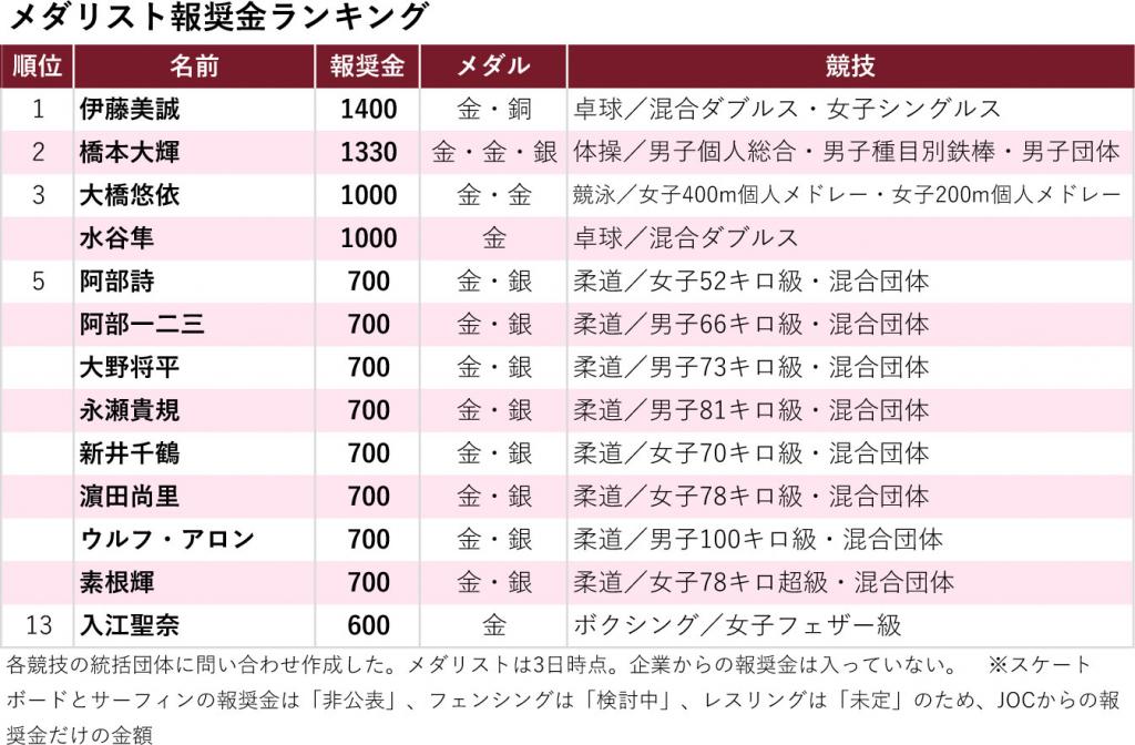 2冠の大橋悠依1千万円、橋本大輝1330万円…伊藤美誠、阿部兄妹は? 五輪メダリスト「報奨金」ランキング