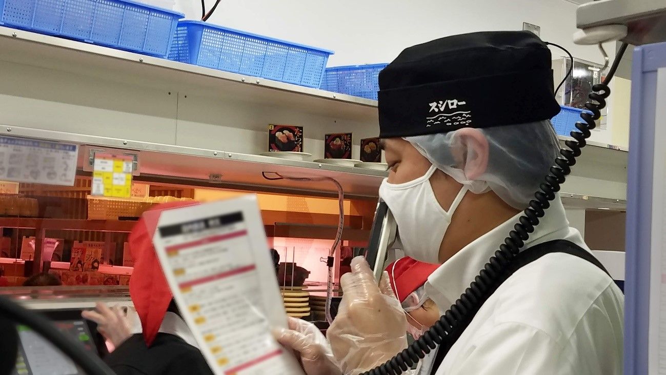 店内の活気付けに、店舗オリジナルの店内放送を流すスタッフ。