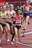 陸上女子1500メートル予選で力走する田中希実(手前)=2021年8月2日、東京・国立競技場(写真=時事通信フォト)