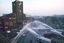 学生が立てこもる東大安田講堂に向け、放水する機動隊の車両=1969年1月、東京都文京区