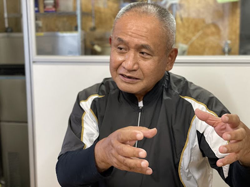 沖縄尚学を県勢初の甲子園優勝に導いた金城孝夫監督。「勉強しながら甲子園にいくチームを沖縄につくる」ことが目標だった=6月30日、愛知県弥富市(筆者撮影)