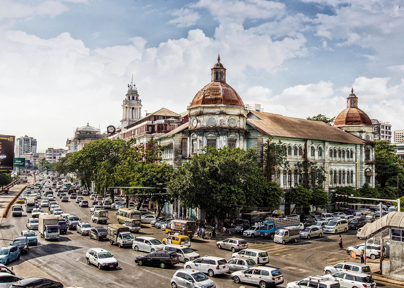ミャンマー・ヤンゴンで軍のクーデターに抗議する人々=2021年2月9日