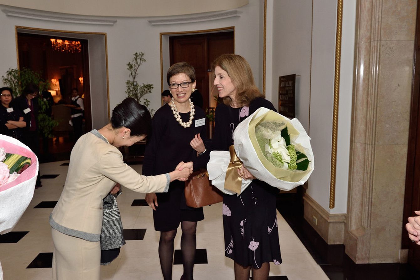 ANAインターコンチネンタルホテル東京の代表としてケネディ駐日米国大使(当時、右)を訪問する薄井シンシアさん(中央)