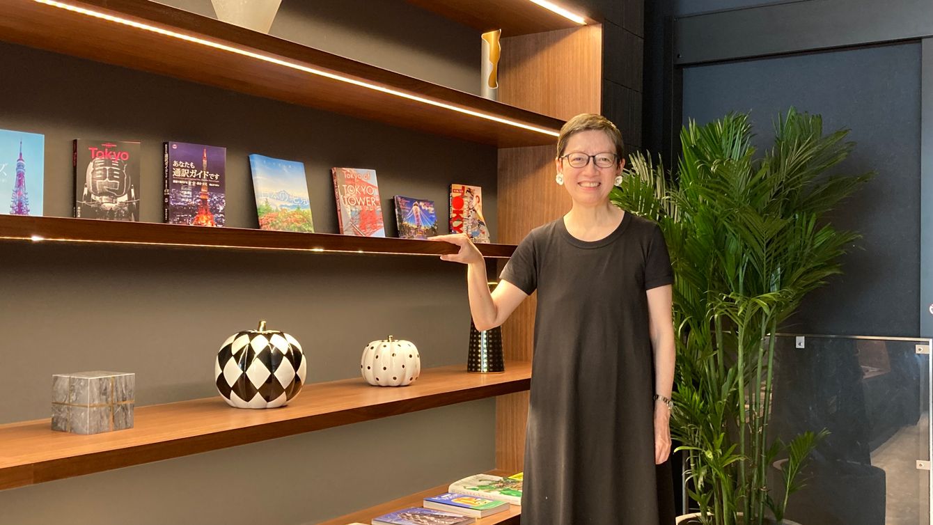 7月にオープンしたばかりのホテル「LOF HOTEL Shimbashi」のロビーに立つ薄井シンシアさん