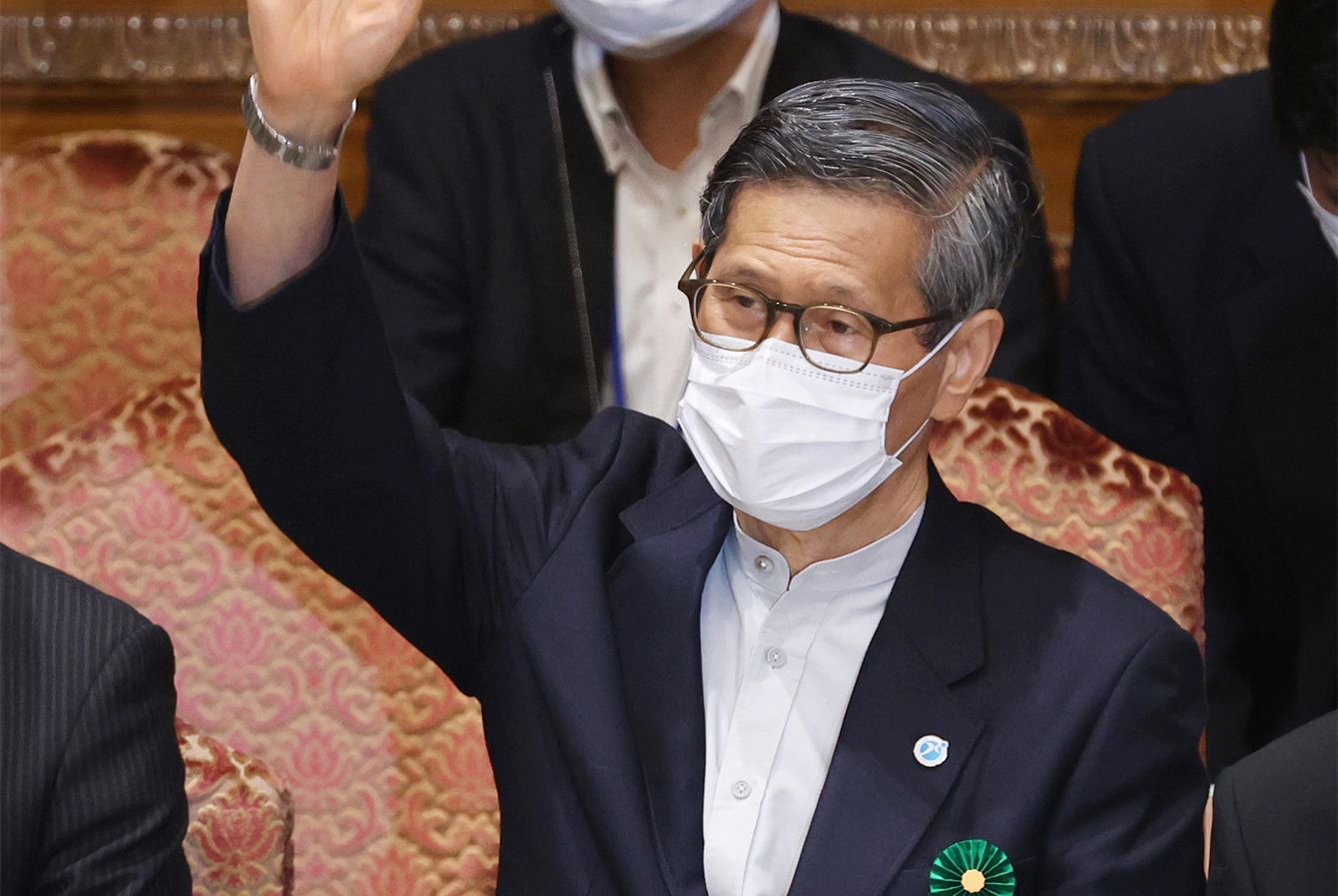 参院内閣委員会の閉会中審査で挙手する政府の新型コロナ対策分科会の尾身茂会長(中央)=2021年7月29日午前、国会内