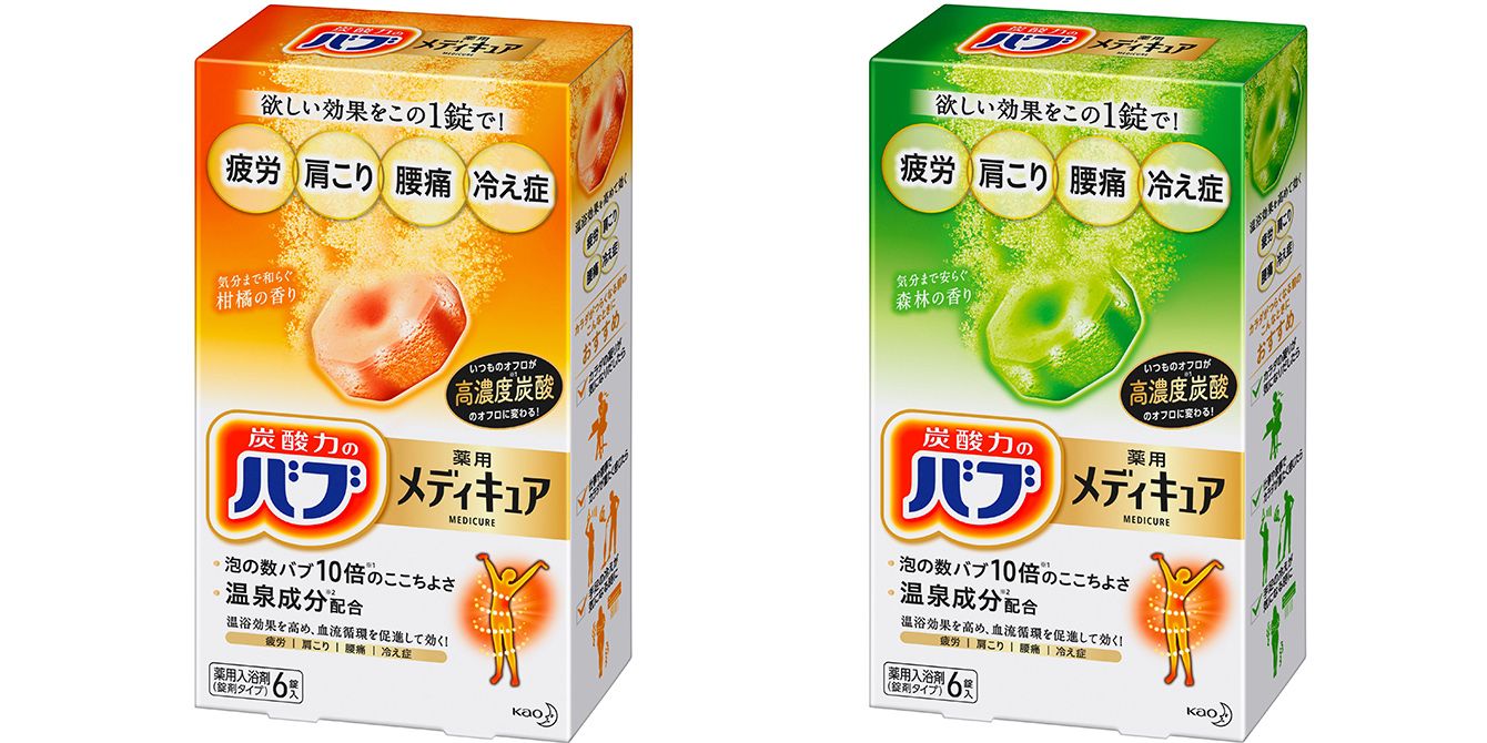 「バブ メディキュア 柑橘の香り」(左)と「バブ メディキュア 森林の香り」(右)