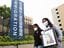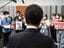 ビデオを見た直後に法務省から出てきたご遺族。ワヨミさん(右から3番目)は、ポールニマさんに支えながら歩いてきた。