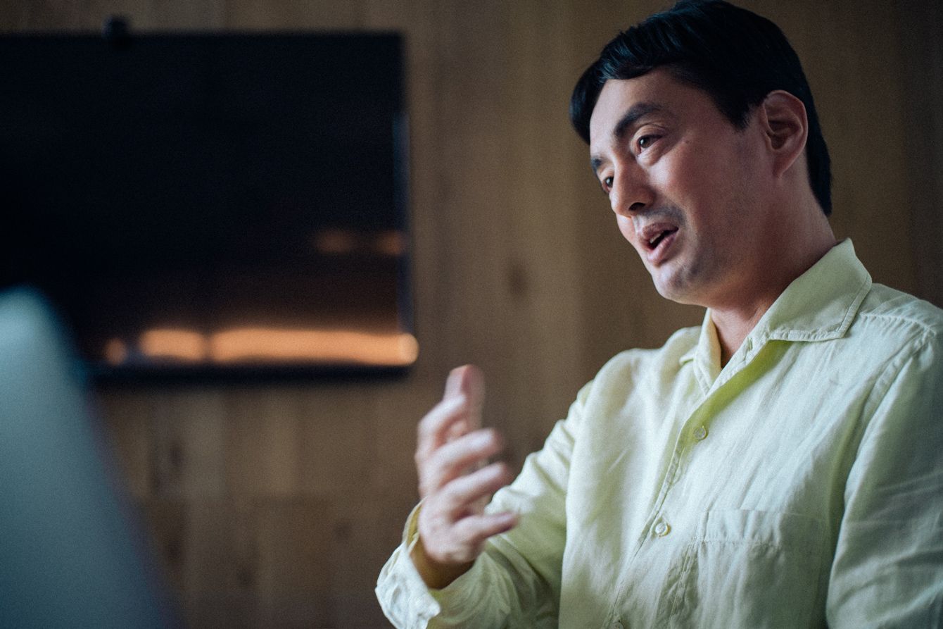 インタビューに答えるメルカリ創業者でCEOの山田進太郎氏