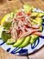 友人宅で作ったアボカドとカニカマのサラダ。酒を飲む人と飲まない人でも作る料理を分ける。