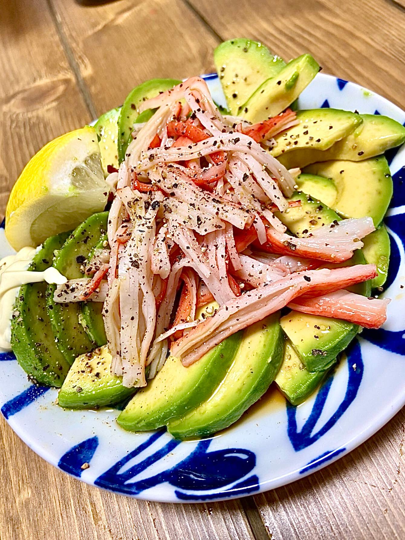 友人宅で作ったアボカドとカニカマのサラダ。酒を飲む人と飲まない人でも作る料理を分ける。