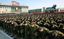 2011年12月29日正午、平壌の金日成広場で行われた金正日総書記を追慕する中央追悼大会で3分間の黙とうする軍の幹部ら(北朝鮮・平壌)
