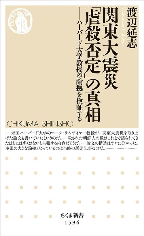 渡辺延志『関東大震災「虐殺否定」の真相』(ちくま新書)