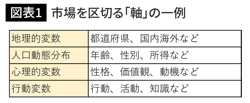 市場を区切る「軸」の一例