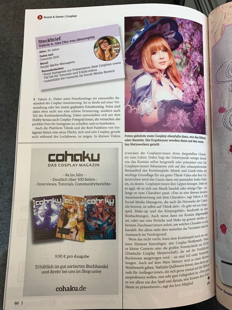 ドイツ語の雑誌に掲載された「原神」のコスプレ(写真=川瀬さん提供)
