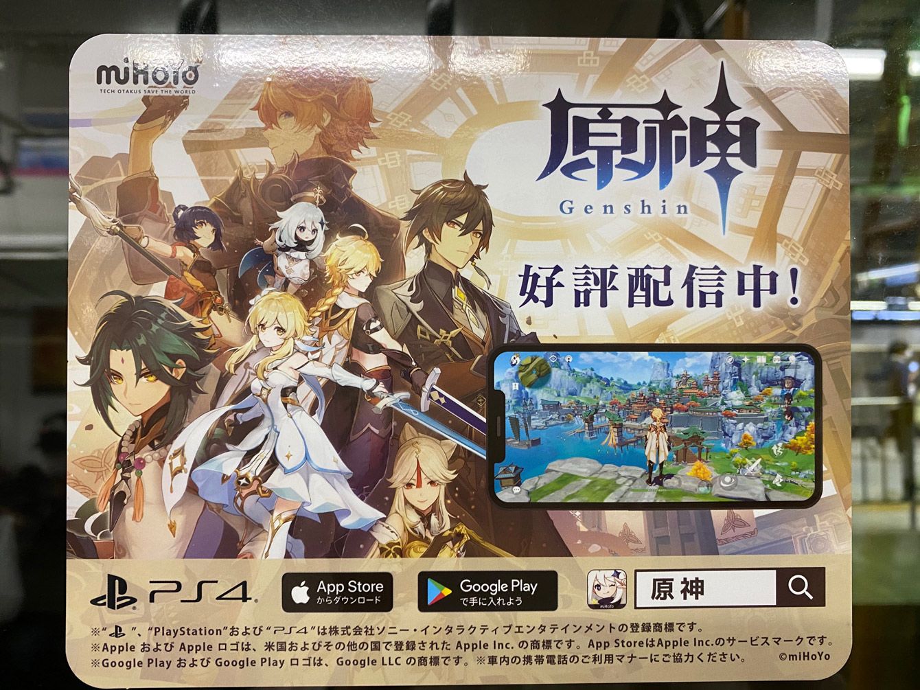東京・渋谷駅前にある「原神」の巨大広告=2021年4月6日