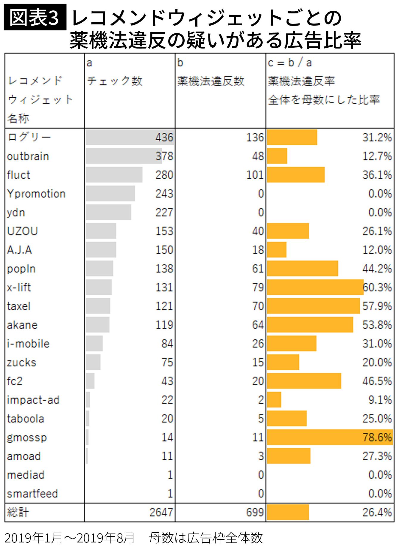 【図表3】レコメンドウィジェットごとの薬機法違反の疑いがある広告比率