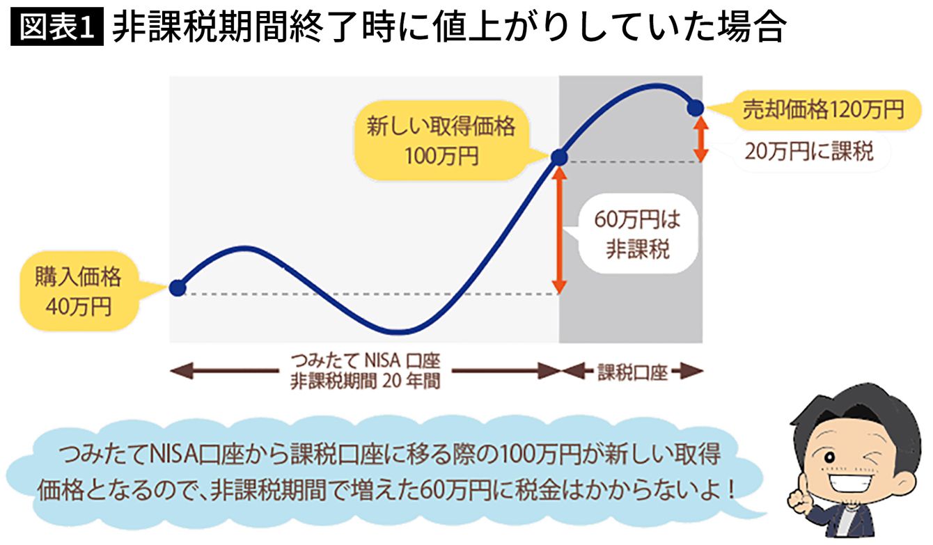 つみたてNISA口座から課税口座に移ったとしても、つみたてNISA口座の中で値上がりした分については税金がかからない。 ※『