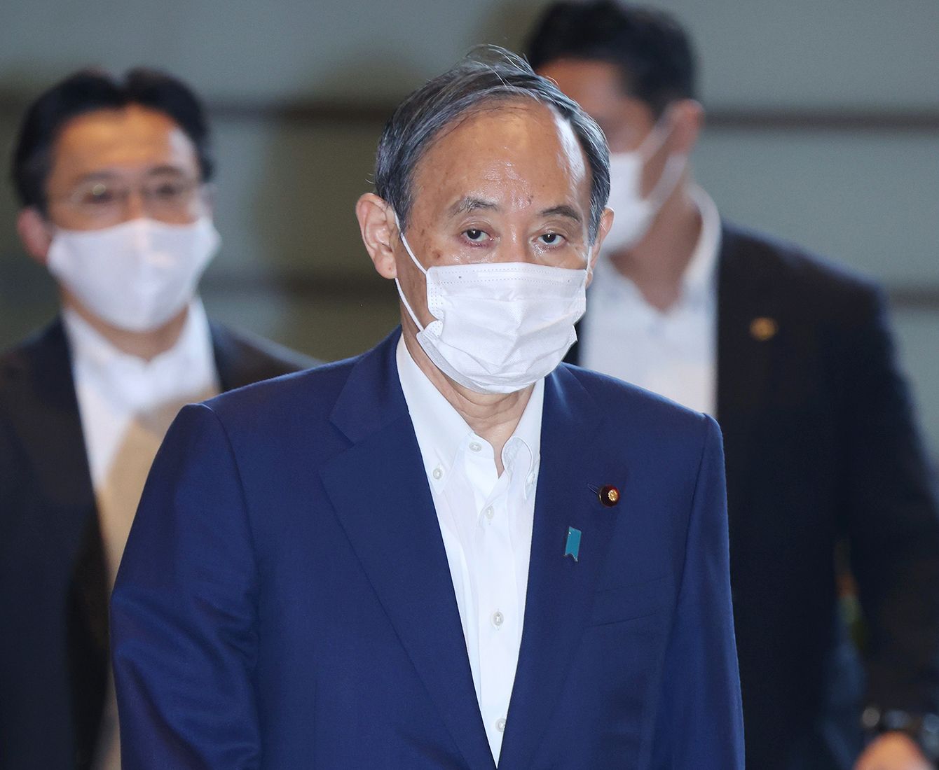 首相官邸に入る菅義偉首相=2021年9月3日午前、東京・永田町