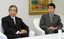 2002年8月7日、自民党脳死・生命倫理及び臓器移植調査会へ申し入れに訪れた河野洋平元外相(左)と同氏の長男の河野太郎議員。同元外相は、重症の肝硬変のため、太郎氏から肝臓の一部を提供されて生体肝移植手術を受けた。