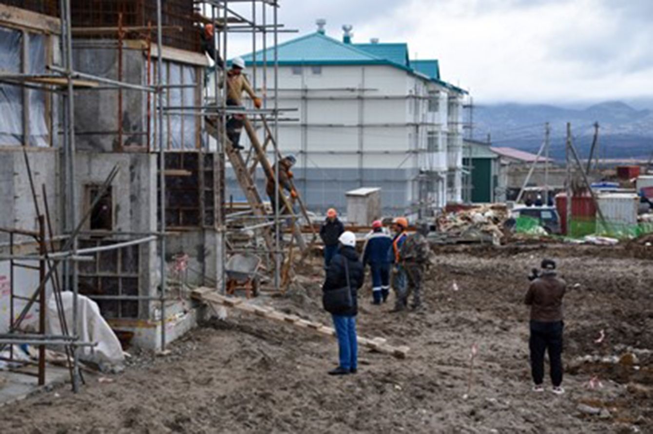 国後島の中心地、古釜布で進む集合住宅の建設工事