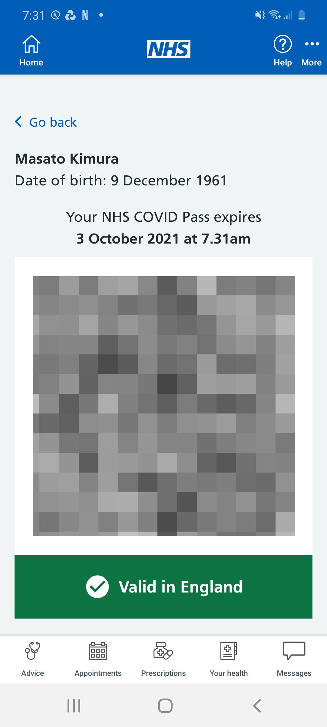 NHSが発行するCOVIDパス(筆者がスクリーンショット)