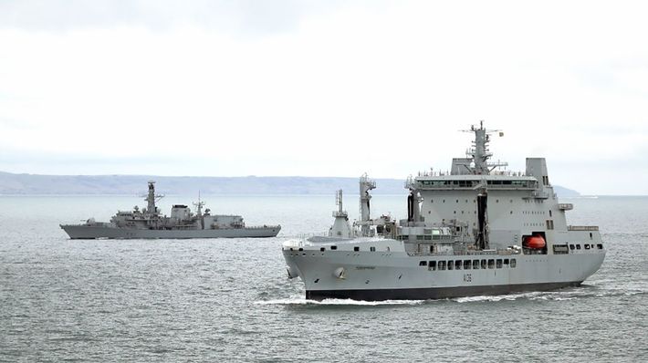 米軍横須賀基地に寄港した英補給艦「タイドスプリング」