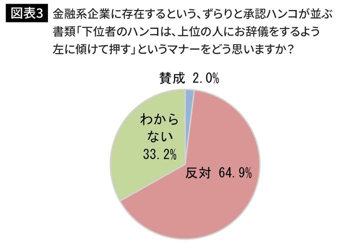 金融系企業に存在するという、ずらりと承認ハンコが並ぶ書類「下位者のハンコは、上位の人にお辞儀をするよう左に傾けて押す」というマナーをどう思いますか?