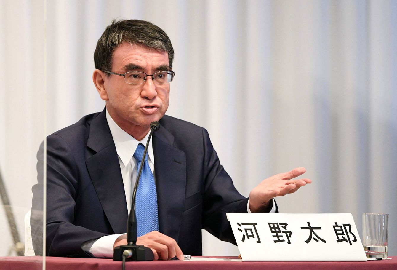 自民党青年局・女性局主催オンライン討論会で質疑応答する河野太郎規制改革担当相=2021年9月20日、東京・永田町の同党本部[代表撮影]