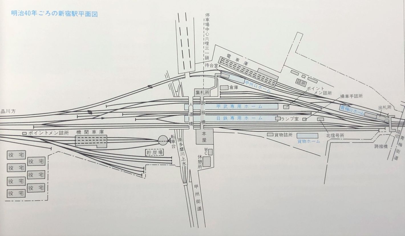 2カ所設置された甲武鉄道の電車ホーム『新宿駅100年のあゆみ』(弘済出版社)より