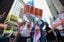 2021年9月4日、アメリカ・ニューヨークのタイムズスクエアで、テキサス州の法律が中絶を禁止したことに抗議する人々が集まっている