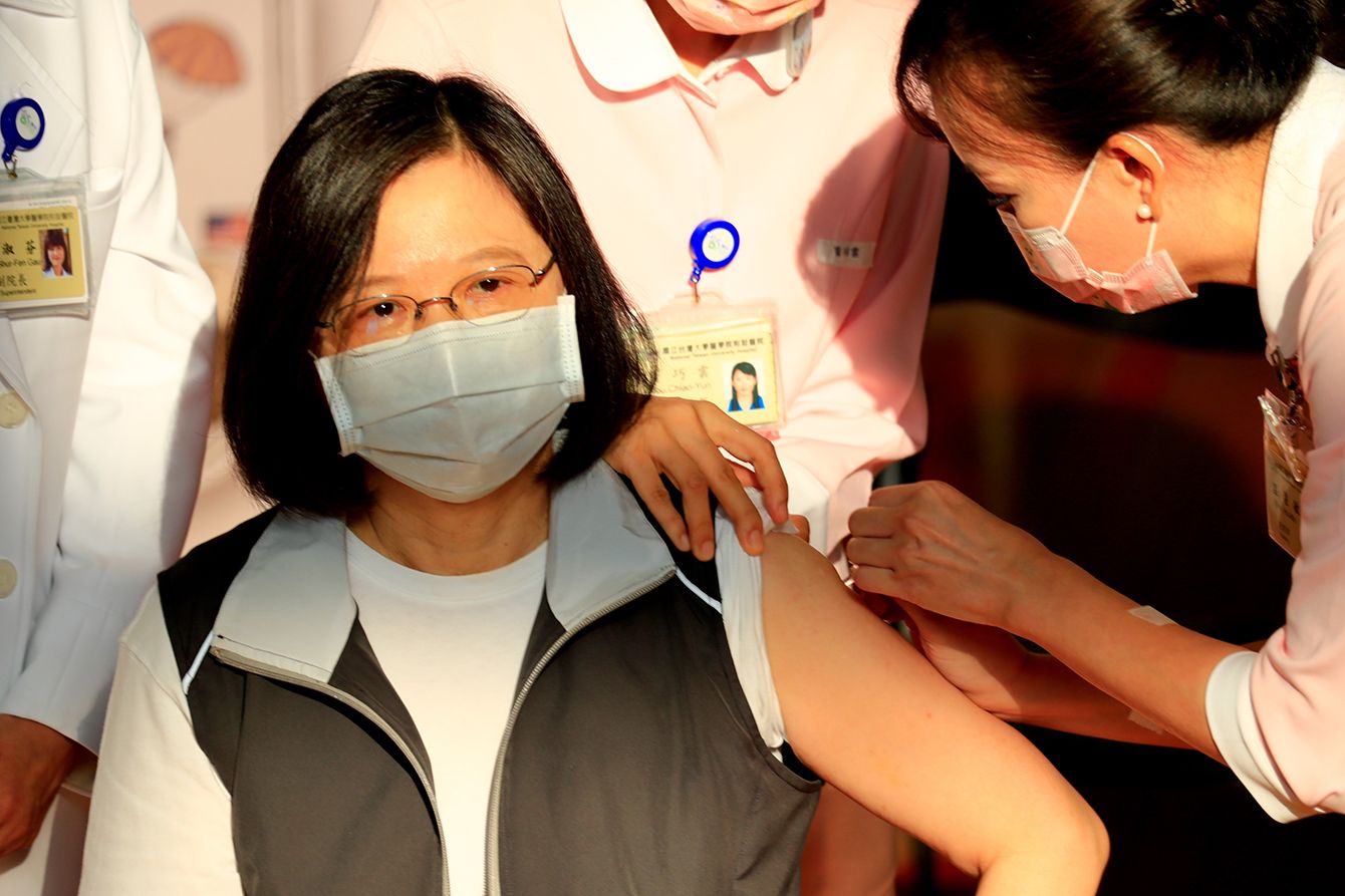 8月23日、台湾が自主開発したワクチンの接種を受ける蔡英文総統