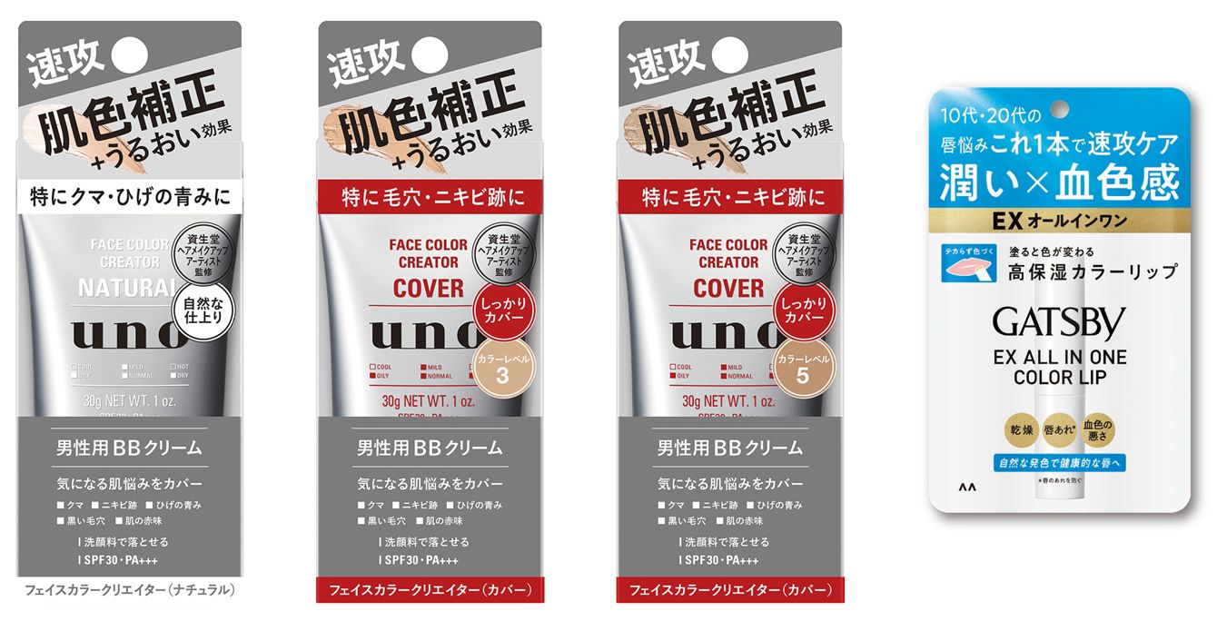 (左)メンズブランド「ウーノ(uno)」の男性用BBクリーム、「フェイスカラークリエイター」シリーズ(画像=ニュースリリース・