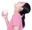 頭を後ろに傾け、がらがらうがいをする。舌の奥までレモン水が届くよう、下顎を上に突き出しながら息を吐くのがポイント(写真=『