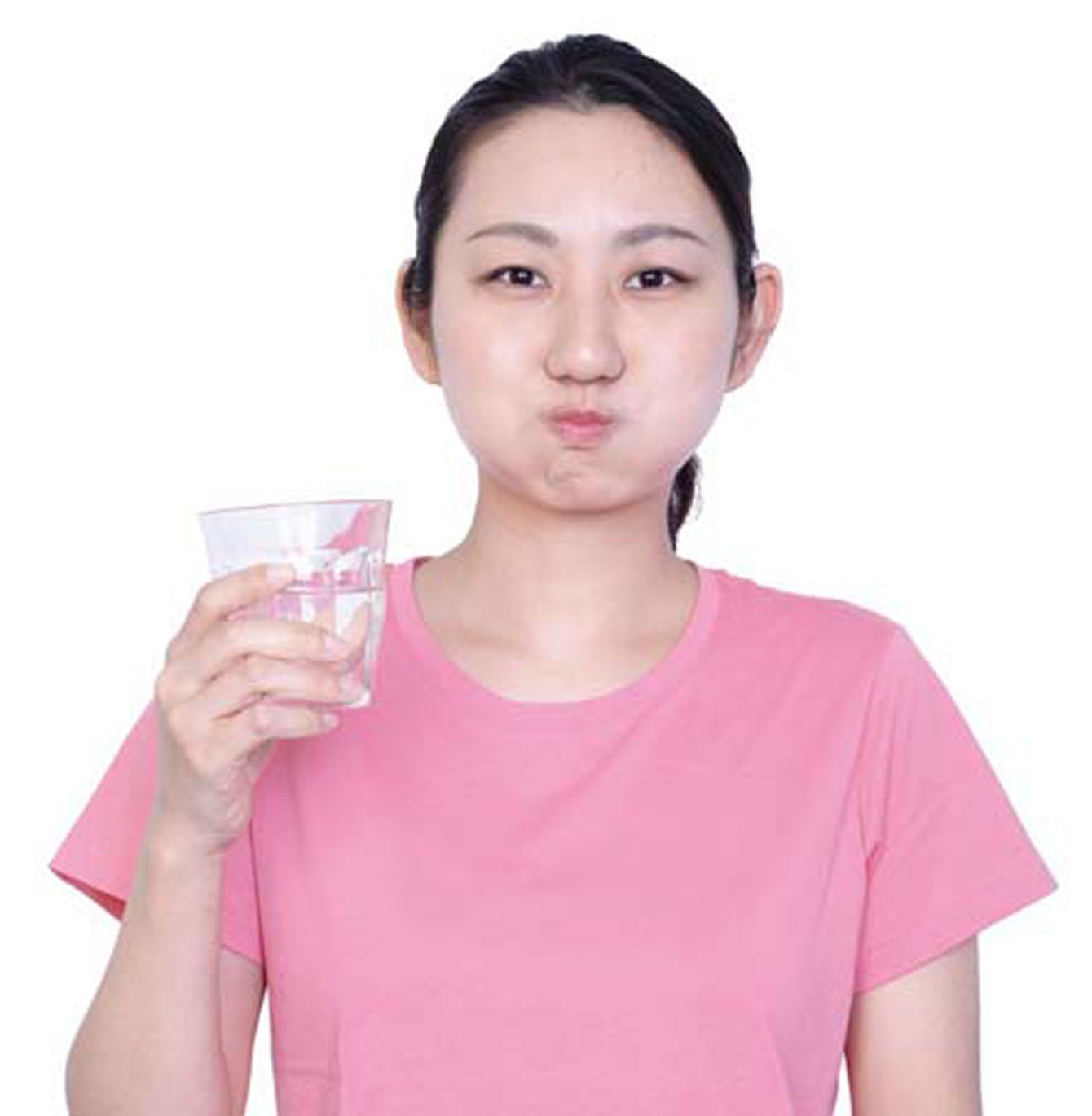 3分の1量のレモン水を口に含み、舌全体に広がるよう約5秒間舌を動かす。次に左右の頰を交互にふくらませ、約5秒間すばやく「ぶくぶくうがい」をする(写真=『