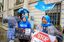 2021年8月5日、英国・ロンドンで、中国の新疆ウイグル自治区で進行中の人権侵害をめぐり、ウイグル人を支援するデモが行われ、ロンドン中心部の中国大使館の外に集まった人々。