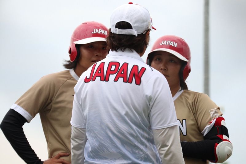 選手に積極的に話しかける宇津木監督 写真=日本ソフトボール協会提供